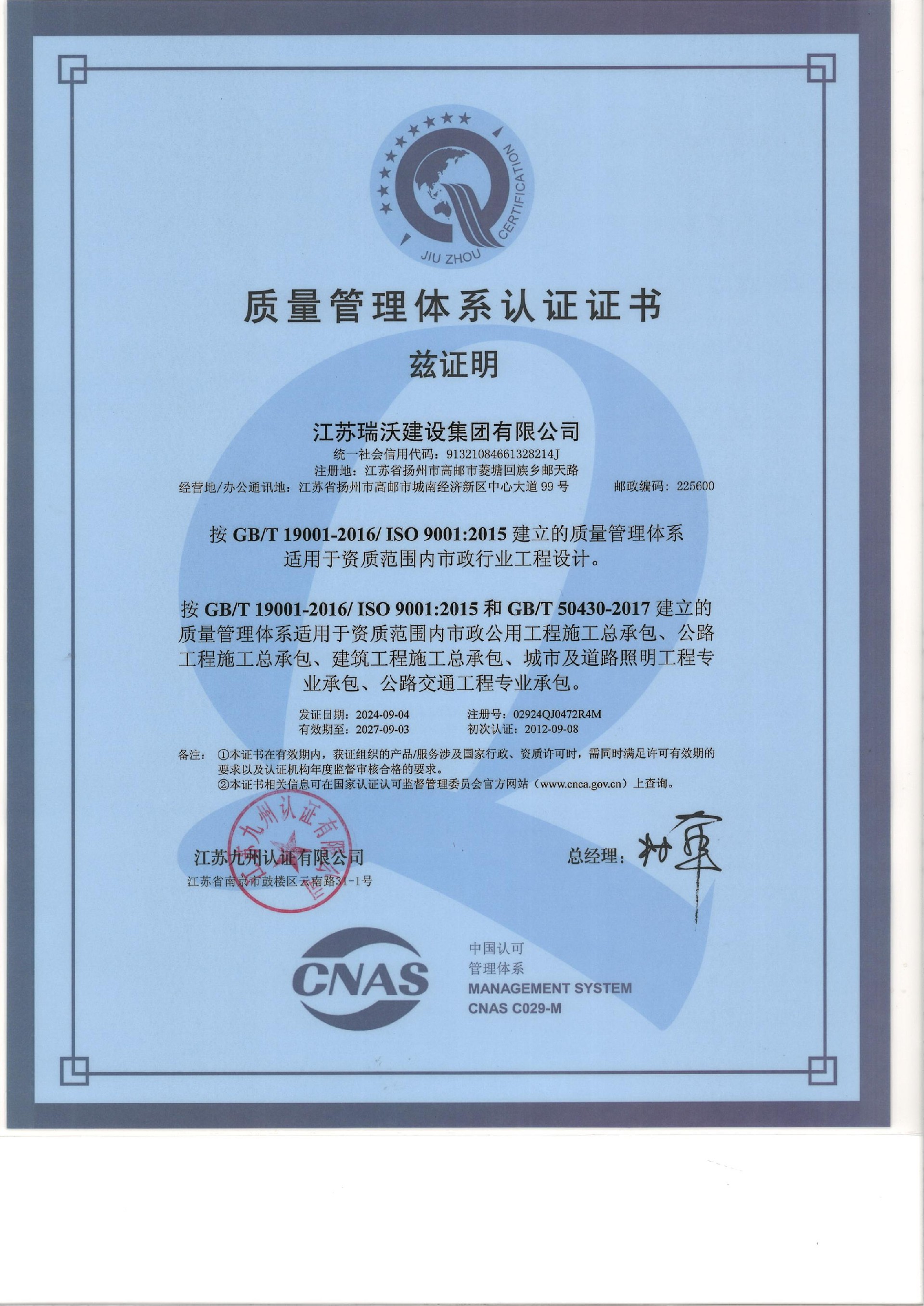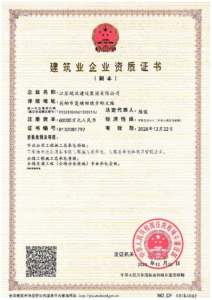 江苏瑞沃建设集团有限公司成立于2007年,是一家以市政、交通工程建设为主导,集房屋建筑、交通安全设施、城市道路照明工程、电力工程、隧道工程、航道工程及投融资为一体的综合性企业。企业注册资本60000万元,现有各类技术人员580人,其中中、高级以上人员498人,注册类人员268人,一、二级建造师166人。公司荣获“江苏省建筑业优秀企业”、“江苏省五一劳动奖状”,连续多年被评为“扬州市先进企业”、“江苏省建筑业百强企业”,连续八年蝉联百强企业基础设施类第一名。